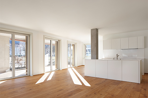 Die kompakte viergeschossige Bauweise mit Flachdach ist Minergie P zertifiziert.