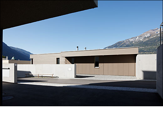 Das Haus für eine fünfköpfige Familie wurde als eines der letzten Häuser im einem Quartierplanungsgebiet von ca. 30 Häusern geplant. Die Umfassungsmauer, die Ausrichtung und die Lage des Gebäudevolumens und eine zurückhaltende äussere Gestalt sind durch die Bestimmungen im Quartierplan vorgegeben. Innerhalb des abgesteckten Rahmens erhält das Wohnhaus eine individuelle Ausbildung und eine identifizierbare Adresse. Die Umfassungswände aus Sichtbeton kontrastieren mit der weichen ockerfarbenen sägerohen Holzverkleidung. Die formale Strenge des Vordaches und der vorgehängten Loggia setzen sich durch ihre einprägsame Form gegen eine gewisse Gleichförmigkeit der Nachbarschaft ab. Im Innern des Gebäudes entwickelt sich der Grundriss um die senkrecht zum Hang verlaufende Innentreppe welche die Eingangssituation im Obergeschoss mit dem Wohngeschoss auf der tiefer gelegenen Gartenseite räumlich reichhaltig verbindet.